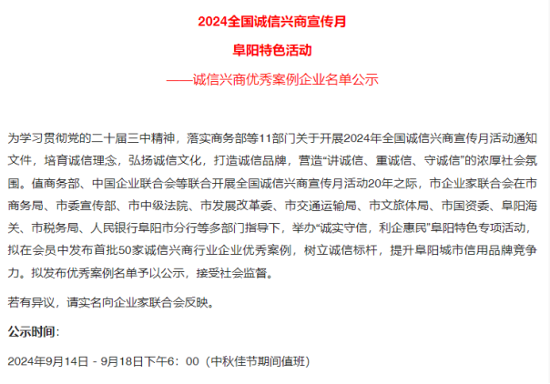 喜報|晶宮綠建榮獲阜陽市誠信興商典范名單2024-09-23